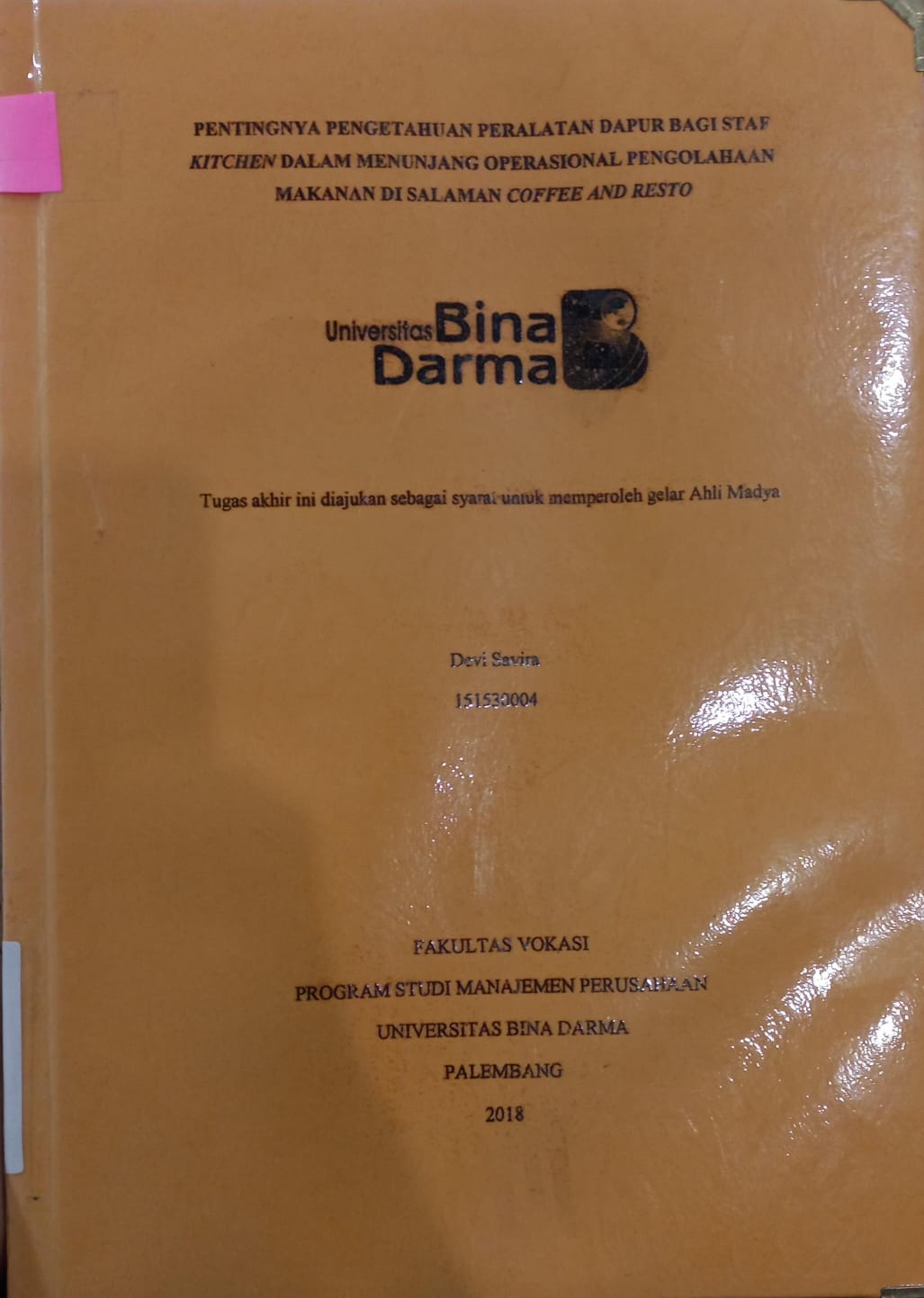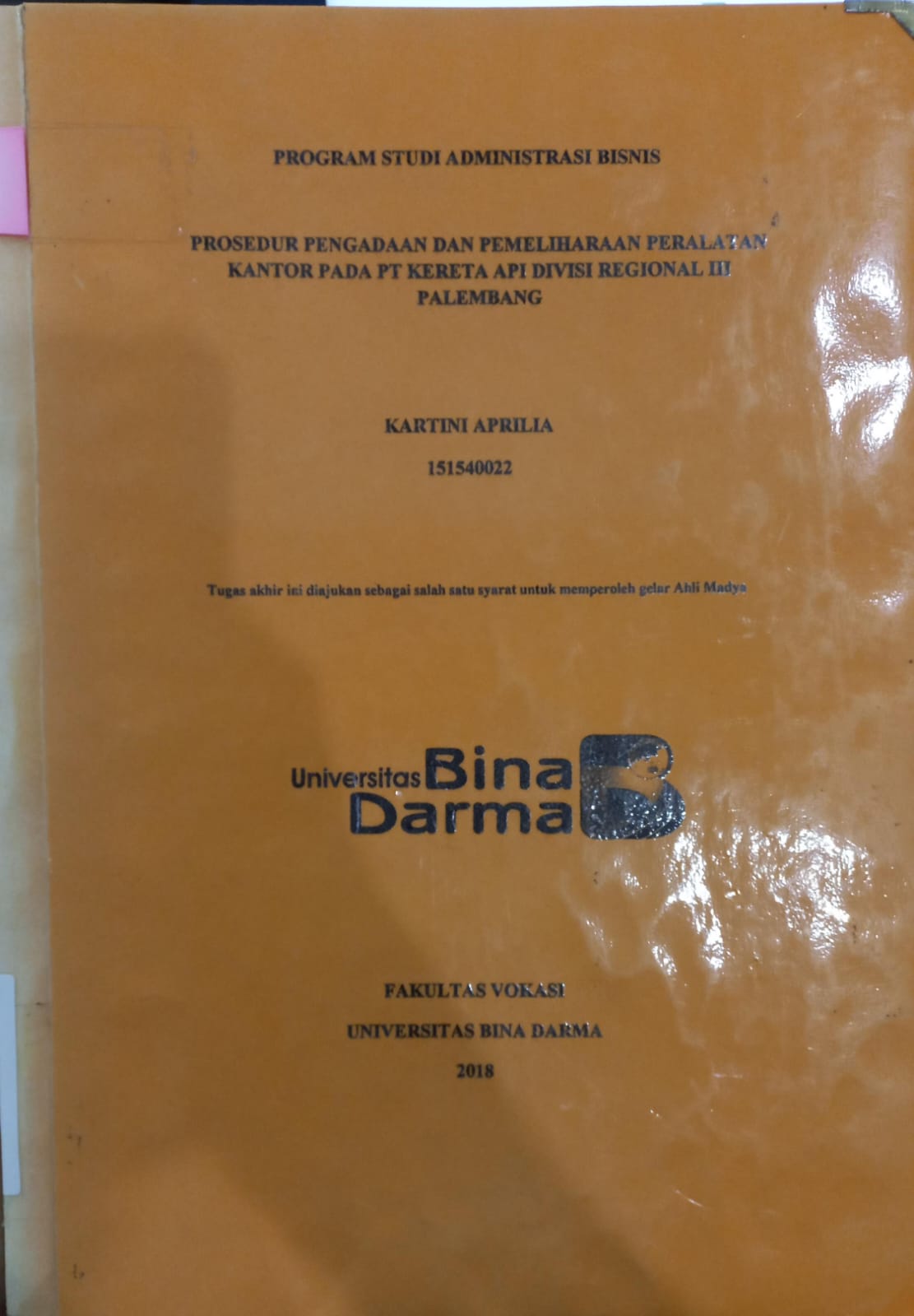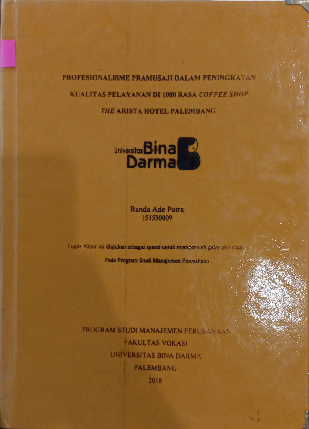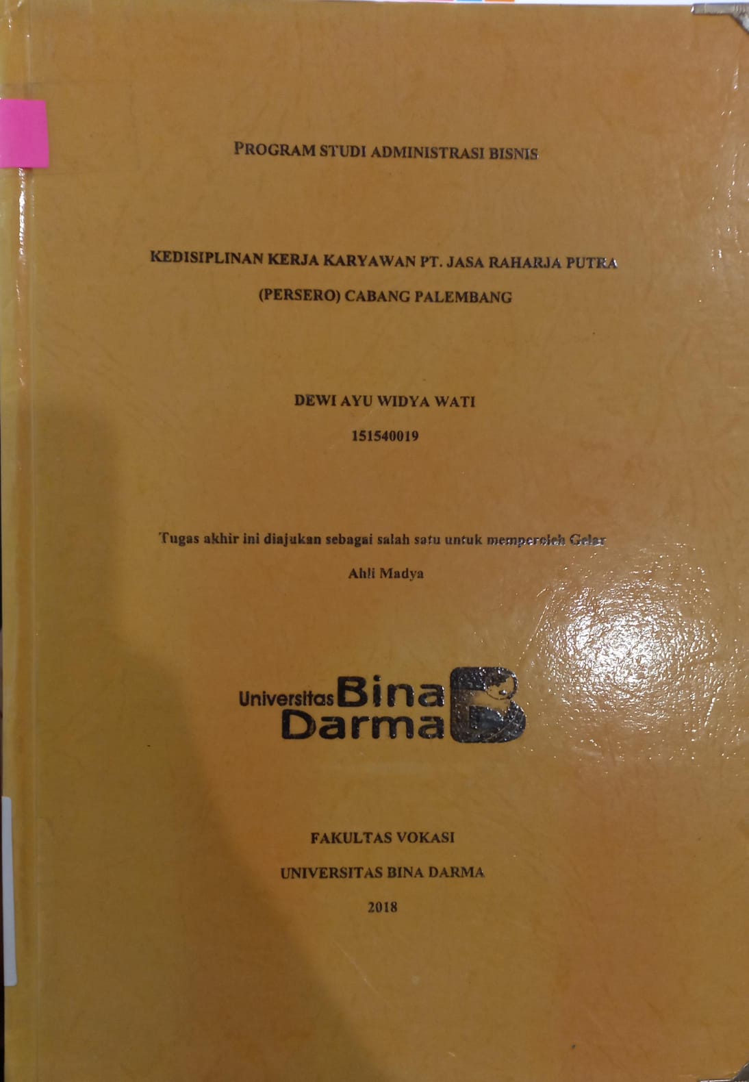 Palembang : Universitas Bina Darma, 2018