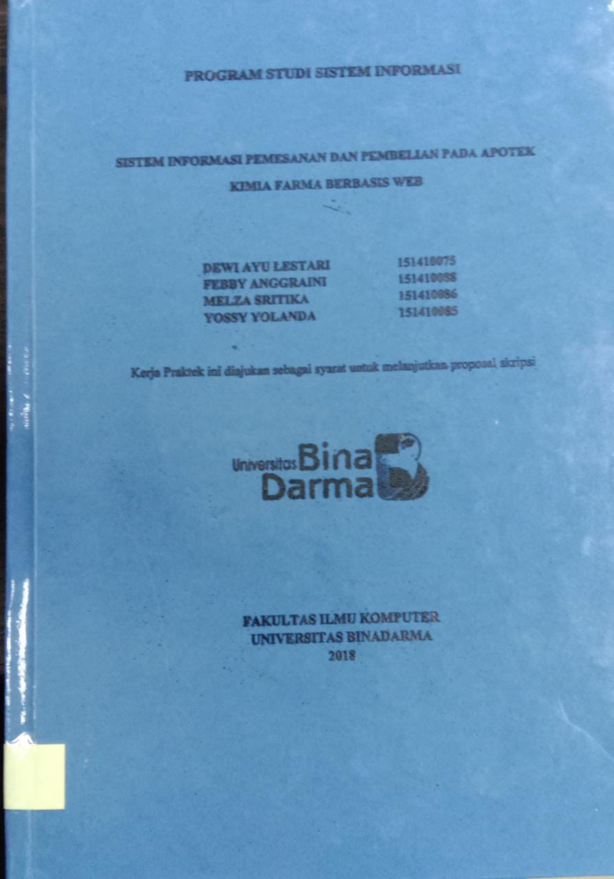 | Judul | SISTEM INFORMASI PEMESANAN DAN PEMBELIAN PADA APOTEK KIMIA FARMA BERBASIS WEB / DEWI AYU LESTARI, FEBBY ANGGRAINI,dkk |