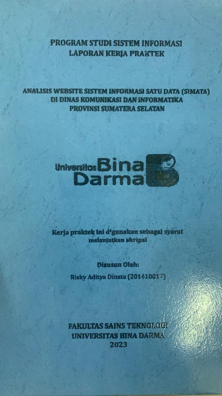 | Judul | ANALISIS WEBSITE SISTEM INFORMASI SATU DATA (SIMATA) DI DINAS KOMUNIKASI DAN INFORMATIKA PROVINSI SUMATERA SELATAN / RISKY ADITYA DINATA |