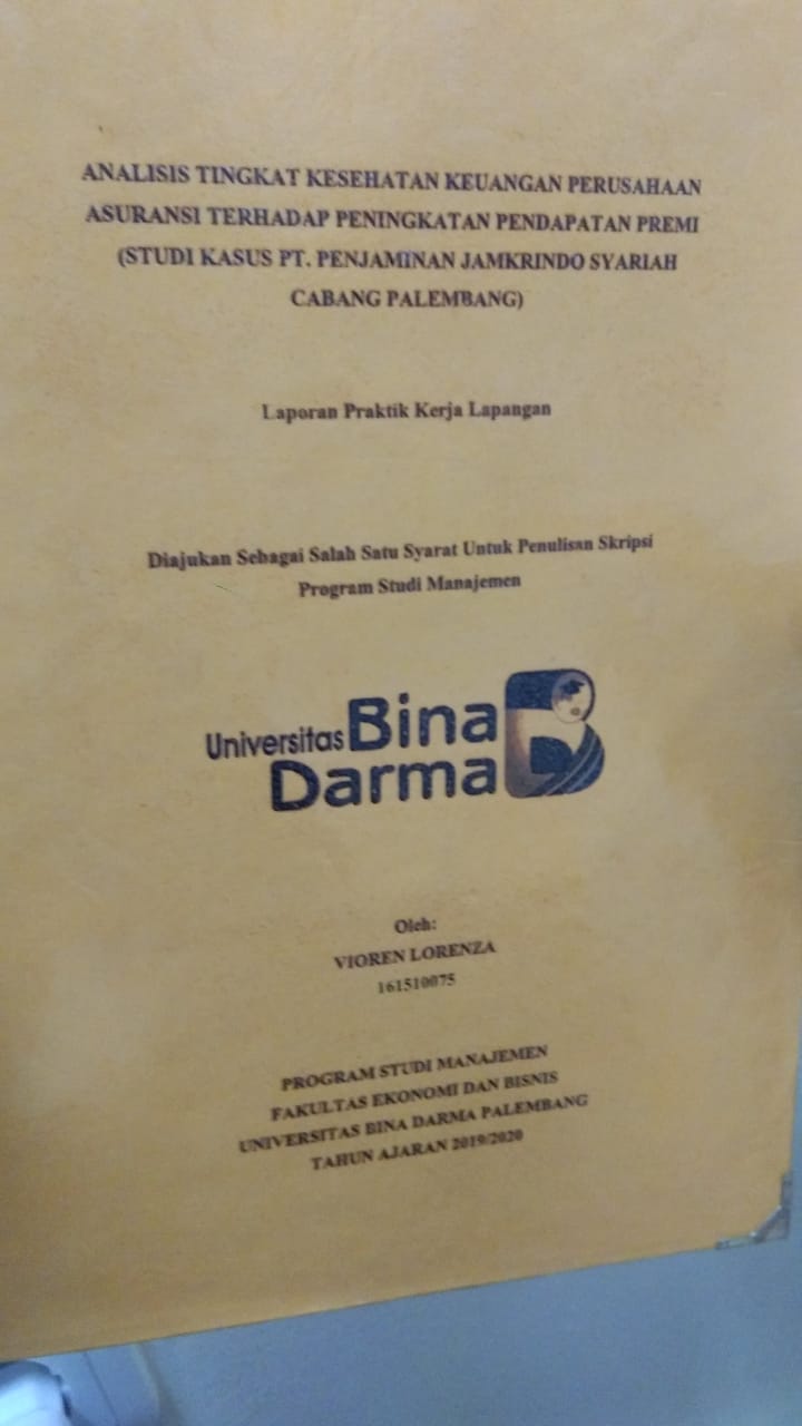 Judul | ANALISIS TINGKAT KESEHATAN KEUANGAN PERUSAHAAN ASURANSI TERHADAP PENINGKATAN PENDAPATAN PREMI (STUDI KASUS PT. PENJAMINAN JAMKRINDO SYARIAH CABANG PALEMBANG) / VIOREN LORENZA |