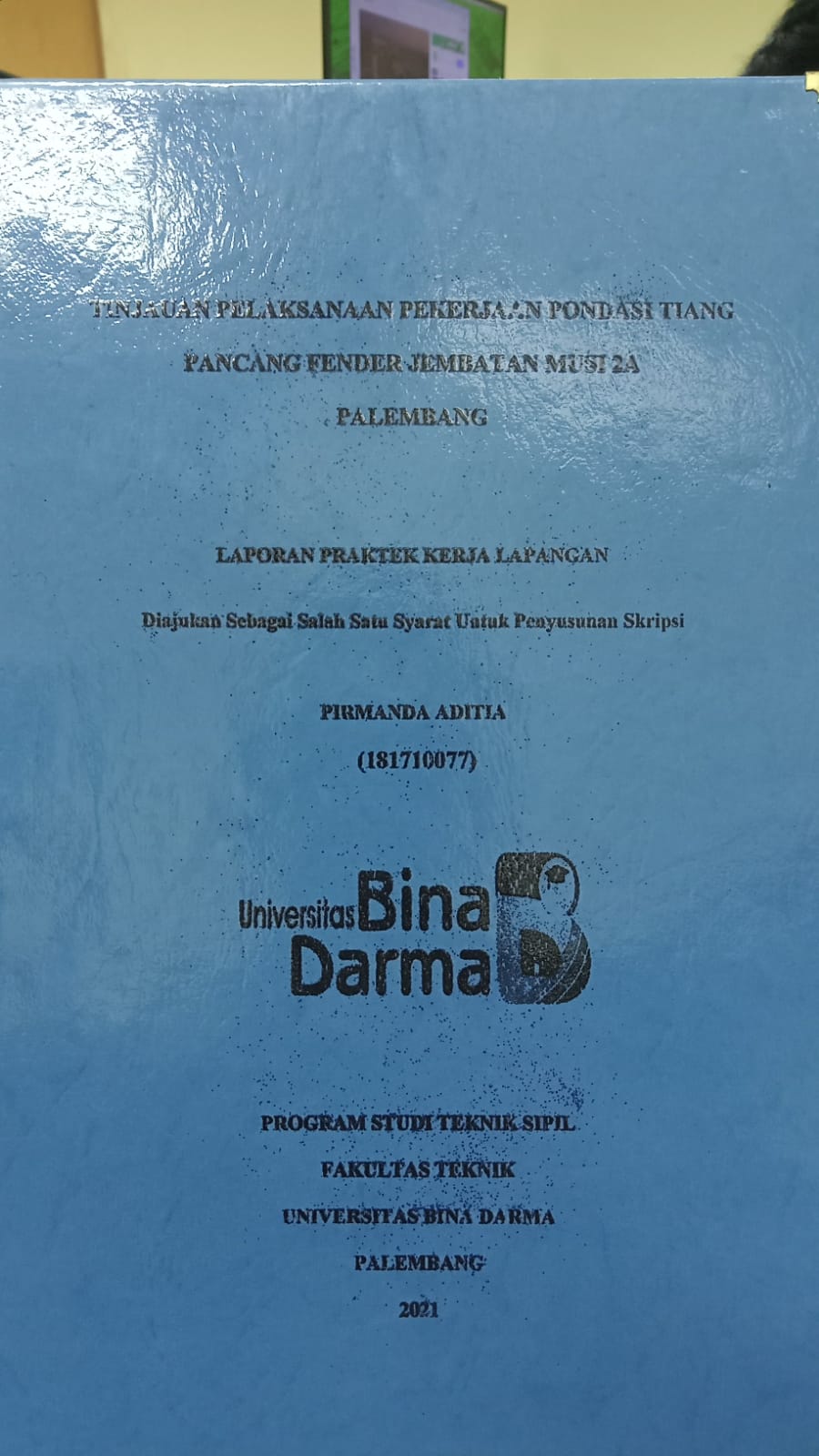 | Judul | TINJAUAN PELAKSANAAN PEKERJAAN PONDASI TIANG PANCANG FENDER JEMBATAN MUSI 2A PALEMBANG / PIRMANDA ADITIA |