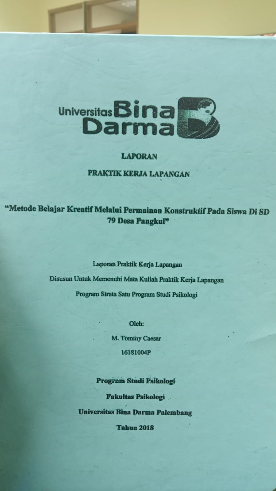 | Judul | METODE BELAJAR KREATIF MELALUI PERMAINAN KONSENTRUKTIF PADA SISWA DI SD 79 DESA PANGKUL / M TOMMY CAESAR |