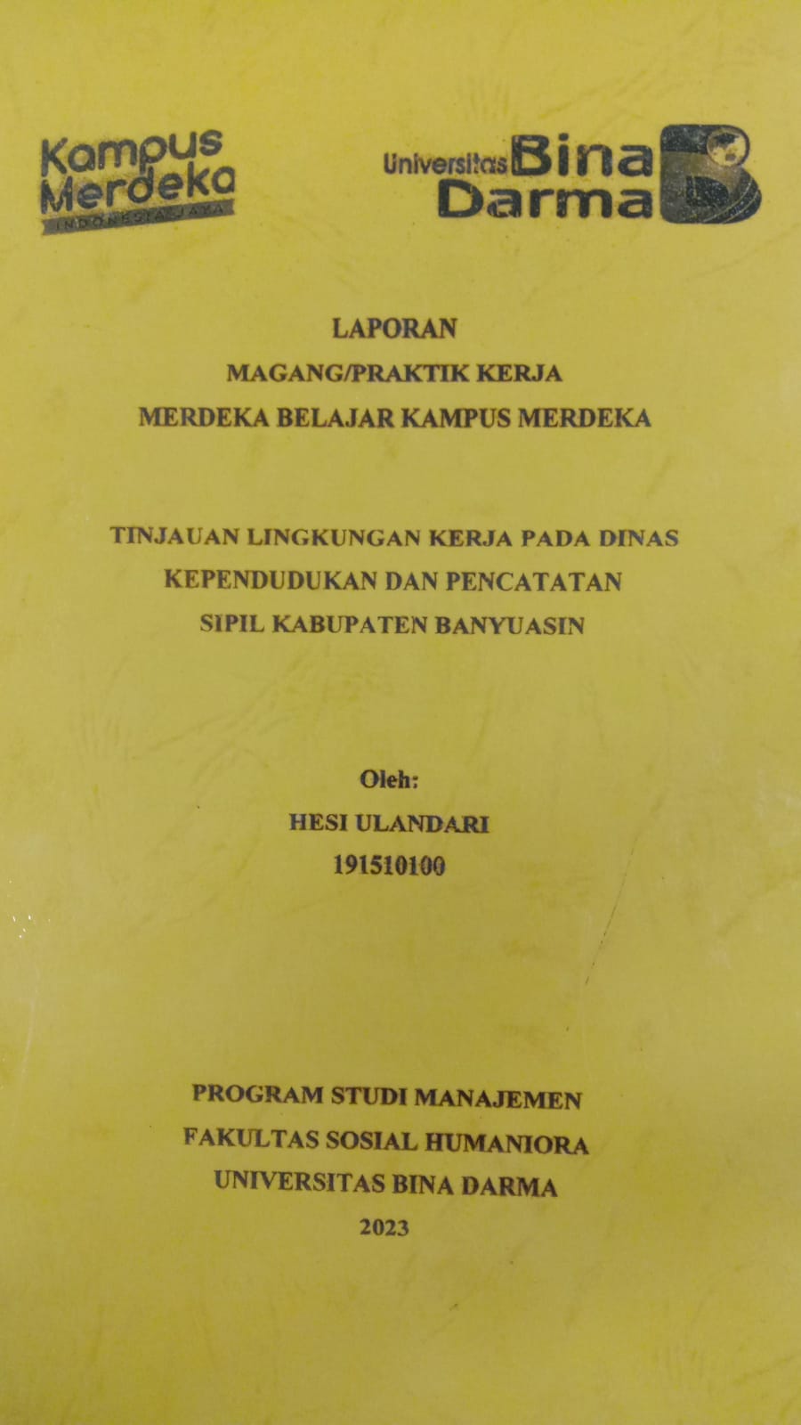 | Judul | TINJAUAN LINGKUNGAN KERJA PADA DINAS KEPENDUDUKAN DAN PENCATATAN SIPIL KABUPATEN BANYUASIN / HESI ULLANDARI |
