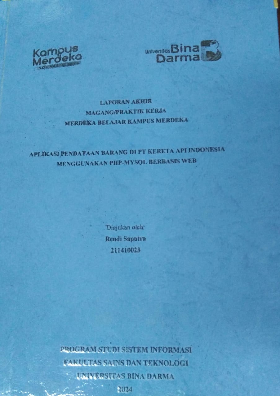 | Judul | APLIKASI PENDATAAN BARANG DI PT KERETA API INDONESIA MENGGUNAKAN PHP-MYSQL BERBASIS WEB / Rendi Saputra |