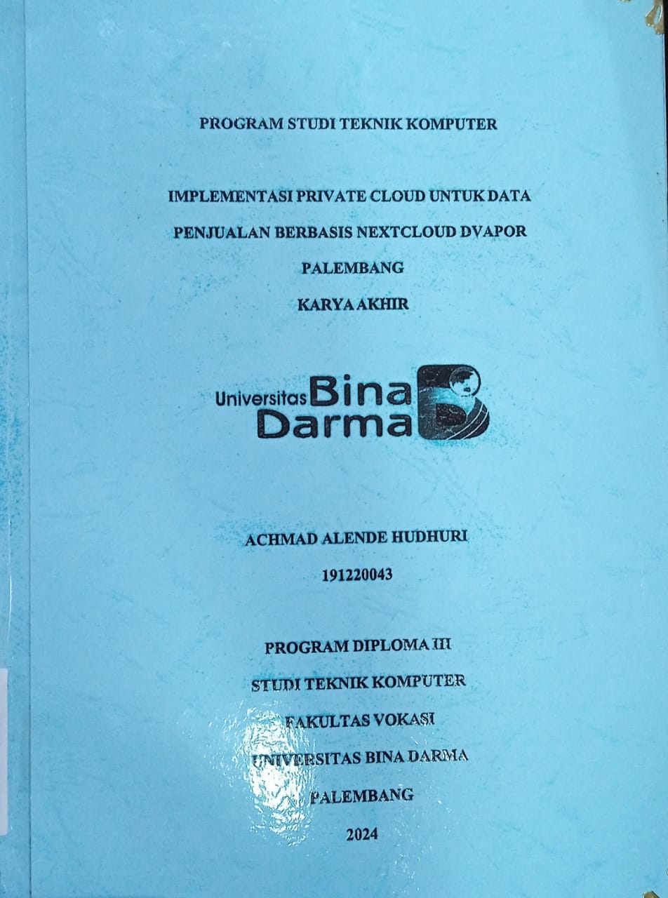 | Judul | IMPLEMENTASI PRIVATE CLOUD UNTUK DATA PENJUALAN BERBASIS NEXTCLOUD DVAPOR PALEMBANG / Achmad Alende Hudhuri |